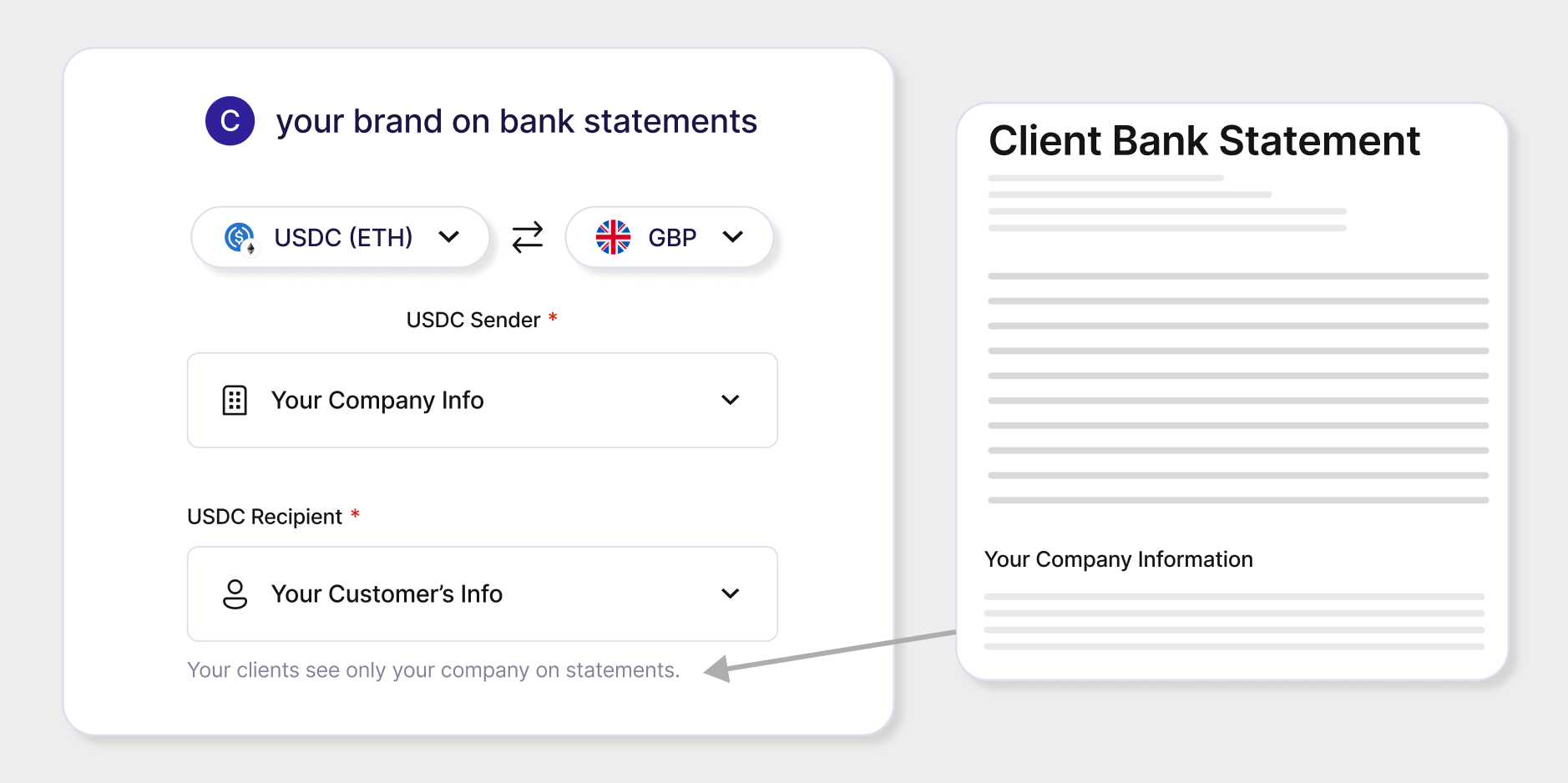 When sending payments on behalf of your customers, we want to make sure the recipient understands at a glance who the payment is coming from – rather than seeing your name, or ours.