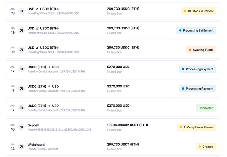 Conduit procesa los pagos teniendo en cuenta el perfil de cada contraparte, garantizando transacciones siempre dentro de los límites de riesgo.